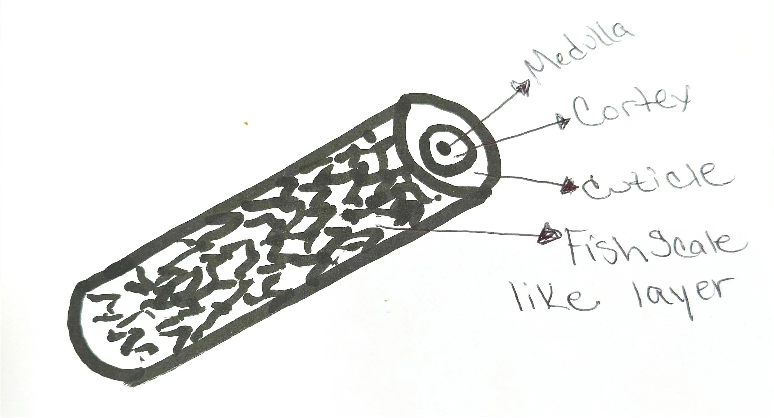 A little science behind the hair strand. The hair strand is made up of the medulla, core(cortex), the cuticle and this fish scale like outer layer that helps protect the core. The core is where our pigment lies and where we get our strength. The cuticle is what protects that layer and the scaley layer protects the cuticle. When we lighten our hair it breaks open the out layer and the cuticle to penetrate the cortex. This can also happen with heat if we are not using heat protectant.